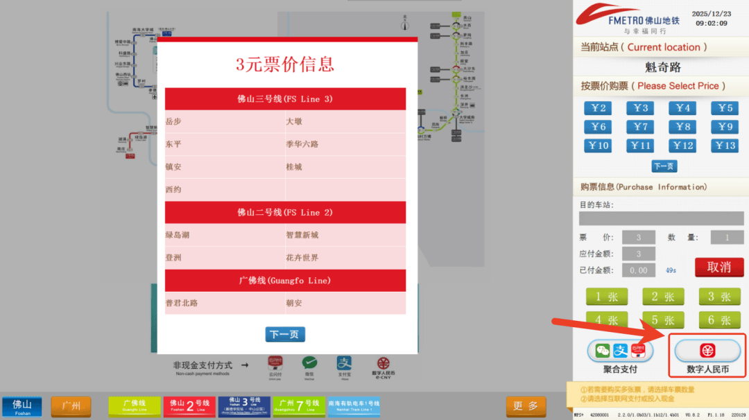 在地铁 TVM 机(自动售票机)选择购票,点击“数字人民币”支付选项,生成支付二维码;