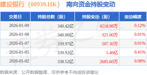 证券之星消息,1月9日南向资金增持4218.98万股建设银行(00939.HK)。近5个交易日中,获南向资金增持的有5天,累计净增持2.17亿股。近20个交易日中,获南向资金增持的有11天,累计净增持1.14亿股。截至目前,南向资金持有建设银行(00939.HK)340.42亿股,占公司已发行普通股的14.15%。