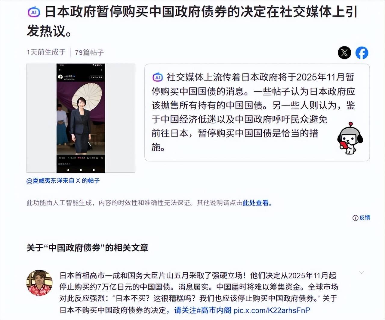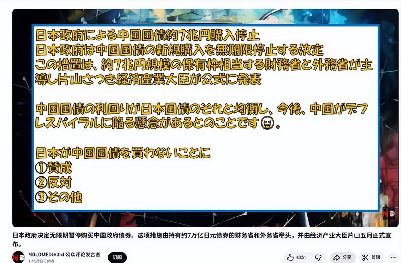 最近,日本网络上爆出一个“重磅消息”——“日本政府将抛售7万亿日元中国国债,打击中国经济!”