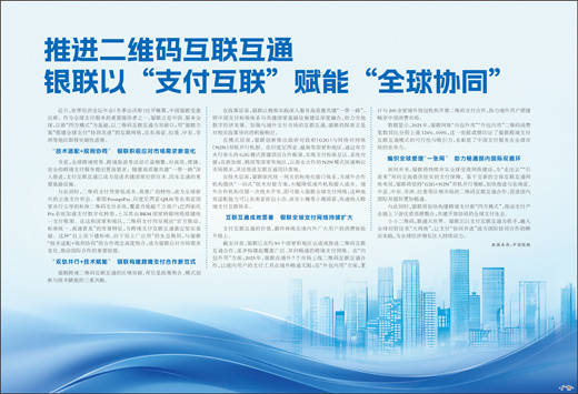 小小二维码,联通大世界。银联正以支付互联互通为抓手,融入全球经贸往来“大网络”,让支付“协同共进”成为国际协同合作的鲜活实践,为全球经济增长注入持续动力。