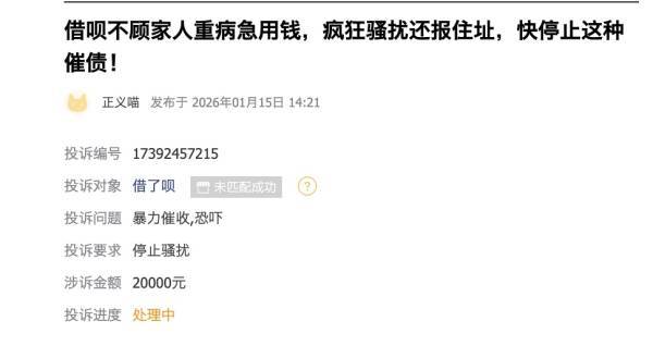 但快速扩张的代价正加速显现。据中国消费者协会《2025年上半年全国消协组织受理投诉情况分析》,与2024年上半年相比,金融服务类投诉比重上升。截至2026年1月,借呗在黑猫投诉平台的投诉量接近7万条,放心借相关投诉超4.4万条,投诉内容高度集中于两类问题:一是催收手段激进,借款人逾期后遭遇高频电话轰炸、通讯录骚扰等“社死式催收”。