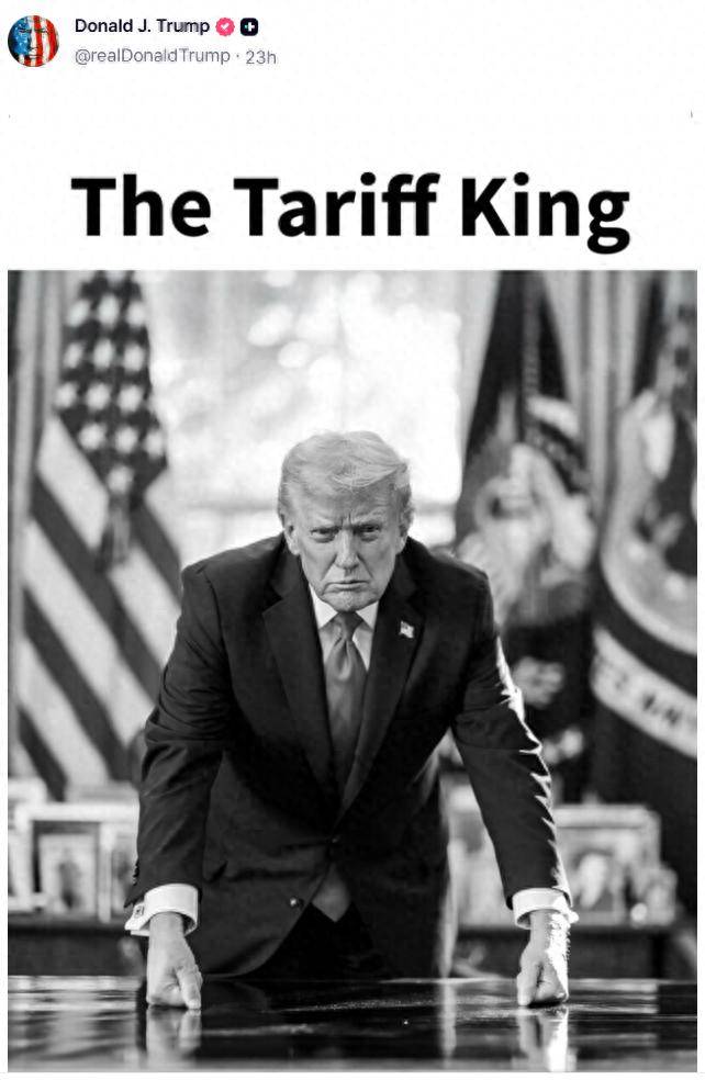 1月17日特朗普在其个人社交平台上发布了一张他自己的黑白照片,并配文称“The Tariff King”,意为“关税之王”。