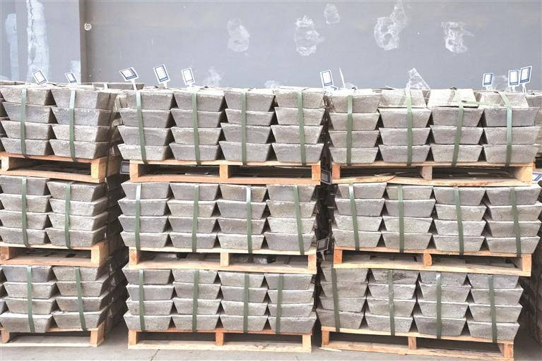 贵州华星冶金有限公司生产的锑锭产品。 通讯员 周燕 摄