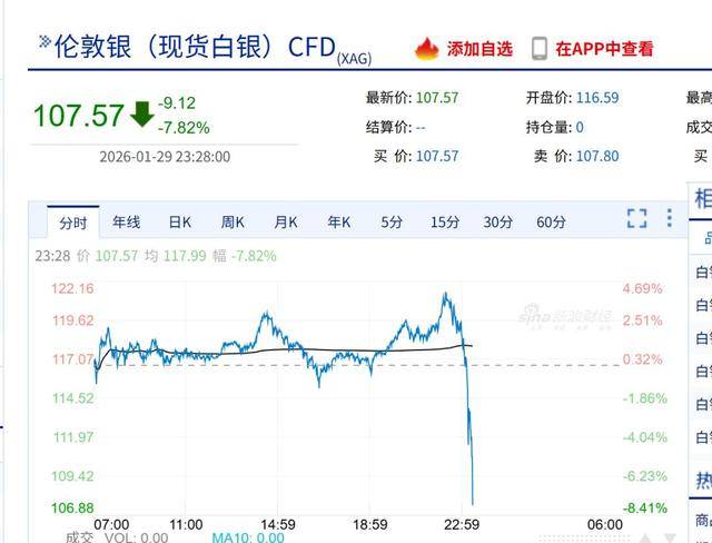 国际黄金和白银价格29日上演“过山车”行情,双双站上高位后又暴跌,市场剧烈波动。