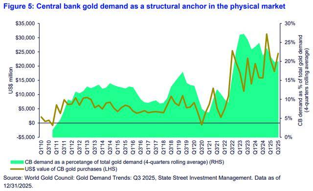 私人投资者这种“奔向优质资产”的避险与通胀对冲行为,正与央行对黄金需求高度无弹性的特性形成互补。与此同时,出于战略原因和多元化需求,储备管理机构也正继续不计价格地购入黄金。