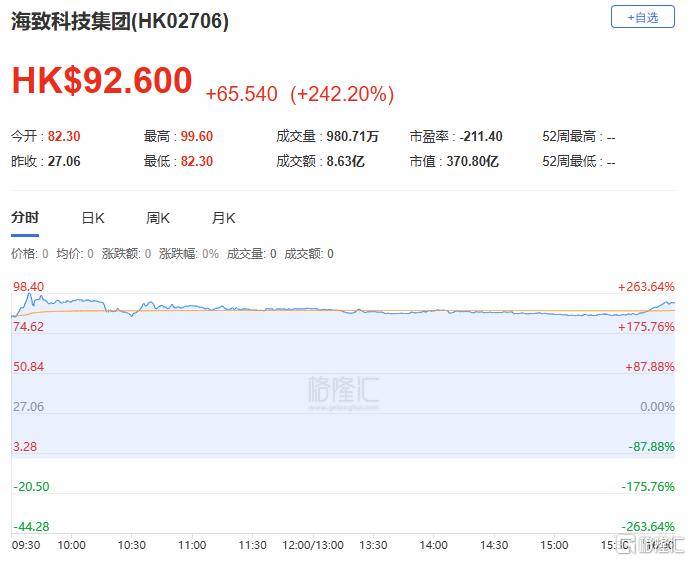 “图计算与图数据库企业”海致科技集团首日在港上市,涨超242%,报92.6港元。