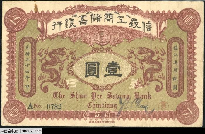 光绪34年信义工商储蓄银行壹圆,镇江地名,PMG-20,右下有手签署名,印刷精致,墨色饱满,估价4万-6万港币;民国18年中国通商银行壹圆,上海地名,PMG-64,印刷清晰,图案立体感强,估价2万-2.5万港币;民国十年劝业银行壹圆,郑州地名,PMG-64,纸质厚实,印章完好,估价3500-5000港币;民国15年中国垦业银行伍圆,上海地名,PMG-45,唯一冠军分,状态自然,图案规整,估价3万-4万港币。