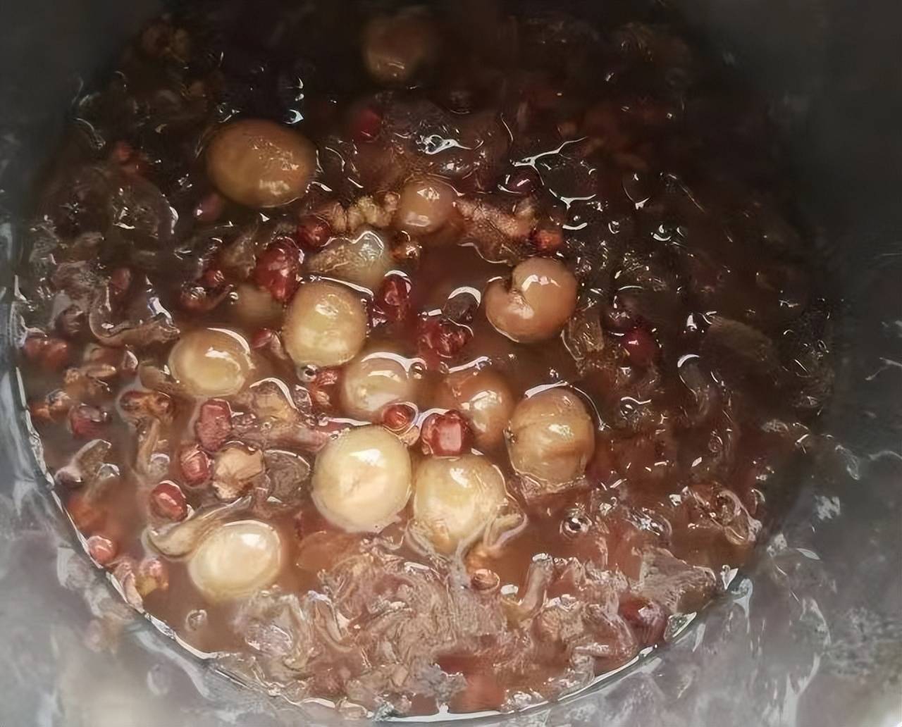 3、先把红豆倒在水里,煮半小时,继而放桂圆和银耳进去,继续用小火炖半小时,都炖透后关火,焖十五分钟,再搅拌几圈,汤汁浓稠绵密,便可以盛到碗里享用。