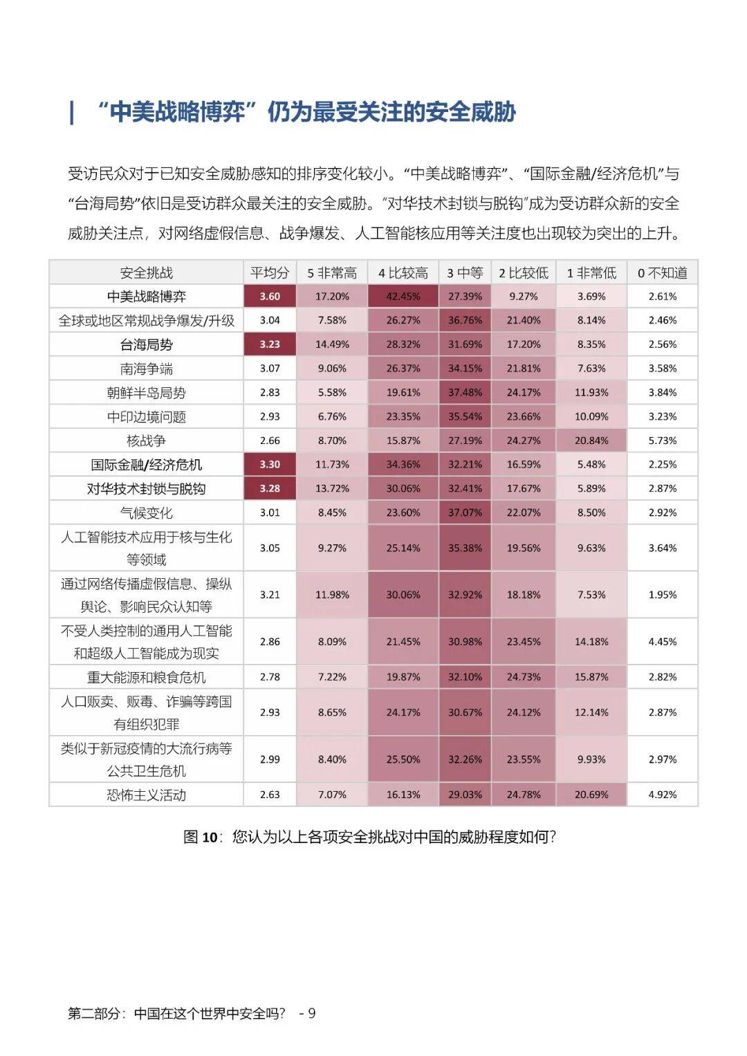 支持中国积极应对:受访者普遍支持中国在全球化背景下采取更加积极的对外政策,包括在必要时建立海外军事基地和增加对外援助。这表明中国民众希望中国在国际舞台上发挥更大作用,同时维护国家的核心利益。