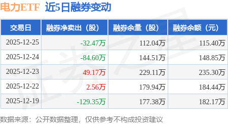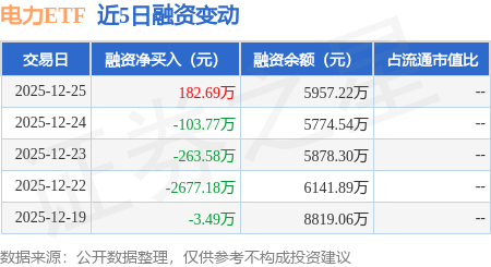 证券之星消息,12月25日,电力ETF(159611)融资买入652.58万元,融资偿还469.9万元,融资净买入182.69万元,融资余额5957.22万元。