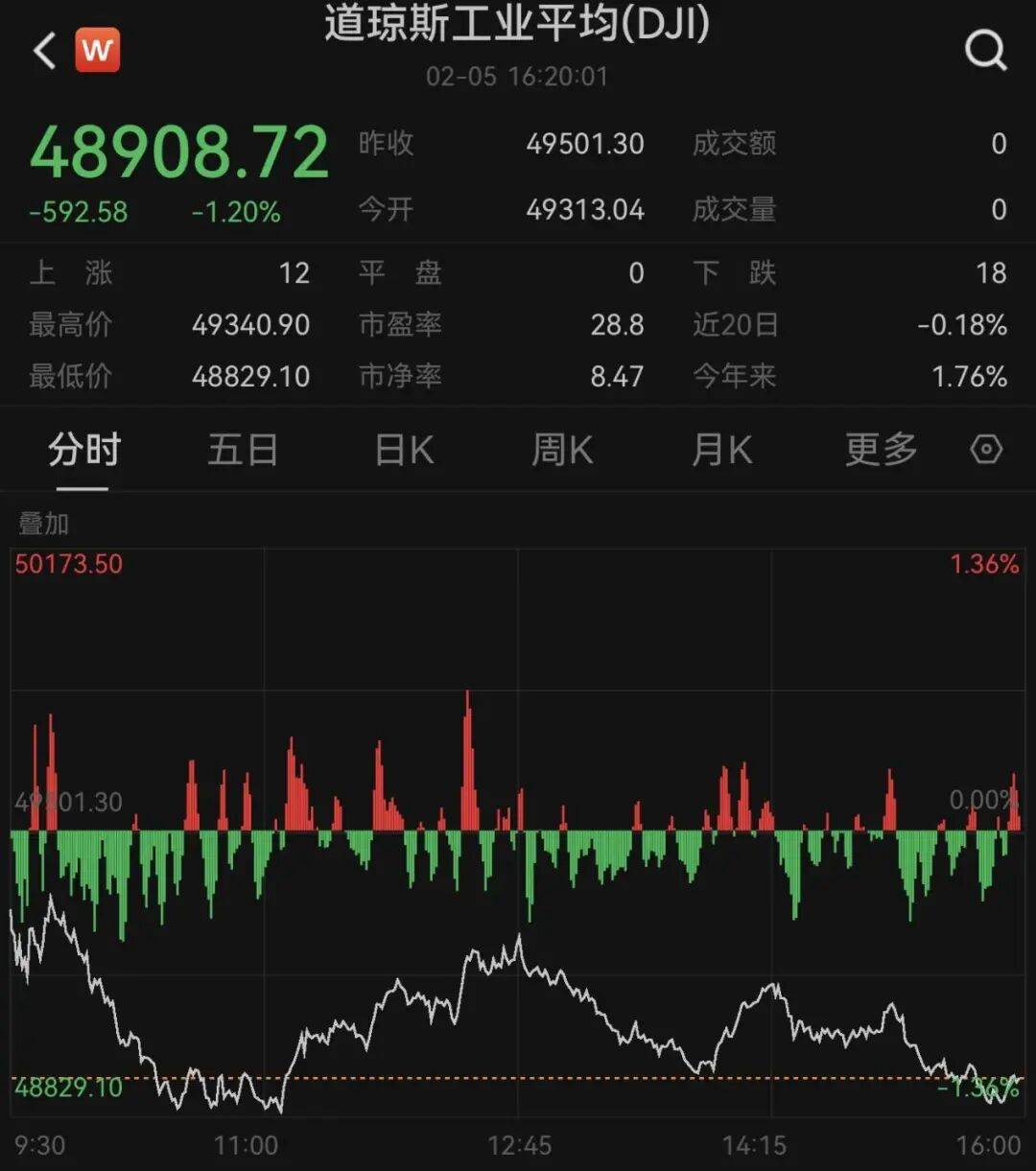 【导读】美股下跌,道指跌近600点;原油下跌,白银重挫,比特币跌破65000美元/枚