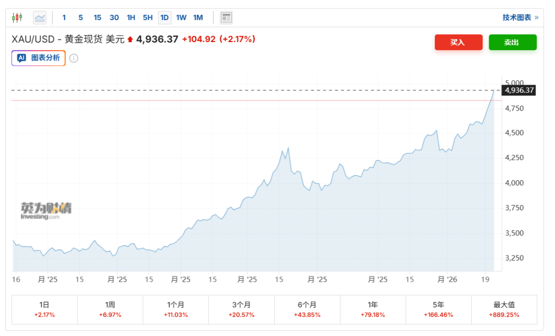 现货黄金继续大涨,站上突破4900美元/盎司,刷新历史新高,日内涨超2%。
