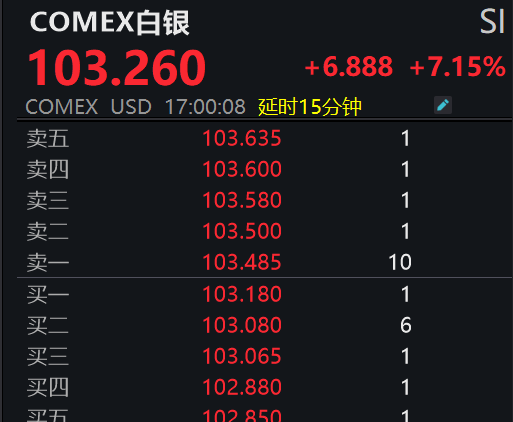 北京时间1月23日晚间,COMEX白银、伦敦银现双双突破100美元历史性关口,最高均超103美元/盎司。