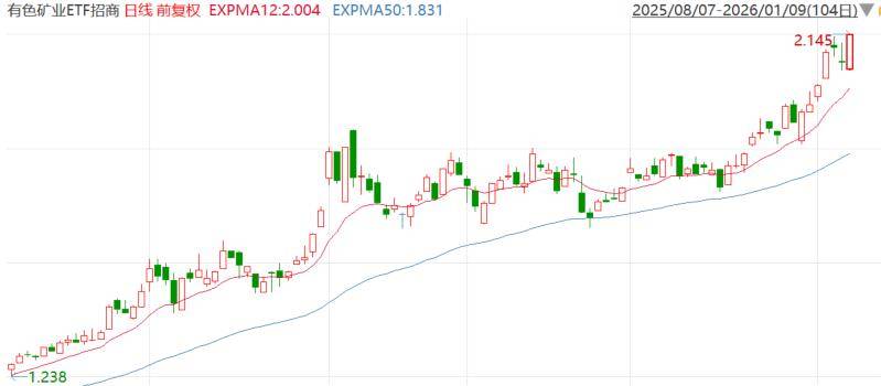 1月9日,有色矿业再度走强,云南锗业、厦门钨业涨停,驰宏锌锗、中钨高新、云南铜业、锡业股份、华锡有色等跟涨。有色矿业ETF招商(159690)涨3.5%,盘中最高价2.145刷新上市以来新高,行情数据显示,该ETF连续10日获资金净申购约7500万元。