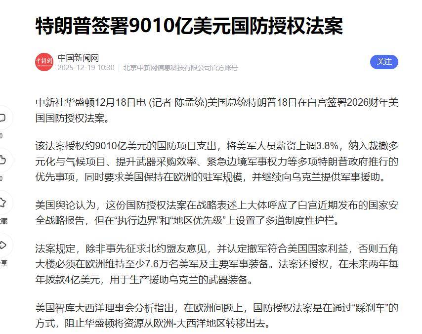37万亿美元的国债,算的就是一个账——经济账,也是实力账。那段时间,美国国会争论激烈,有人拍桌子愤怒喊道:我们的国债已经达到了37万亿美元!这一数字如一座大山,压得所有的雄心壮志都难以喘息。多线作战,已经成了天方夜谭。五角大楼私下进行的推演结论非常清晰:西太平洋的军事平衡,早就发生了变化。白宫官员更加直白地表示:资源必须优先保障本土安全,否则财政就可能崩盘。由此可见,2025年底通过的国防授权法案相当有意思,虽然拨出了9010亿美元的巨额资金,但令人意外的是,整个法案中并未提到直接介入台海这一话题。