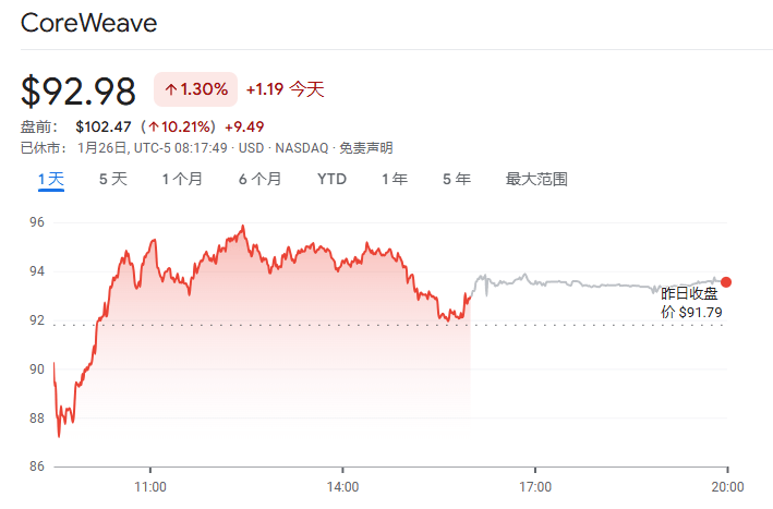 CoreWeave美股盘前涨超10%,英伟达向CoreWeave A类普通股投资20亿美元。