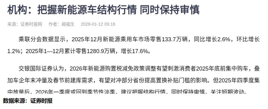 最近关注到新能源汽车市场的新动态,去年全年新能源乘用车零售规模突破千万级,同比有不错的增长。有券商分析,今年相关政策调整可能带来短期市场波动,但产业链价格已经处于底部区域,需求韧性还很强,优质公司的估值也处于历史低位。不过行情到底怎么走,光看这些分析还不够,得从真实的交易行为入手,才能不被外界杂音干扰。