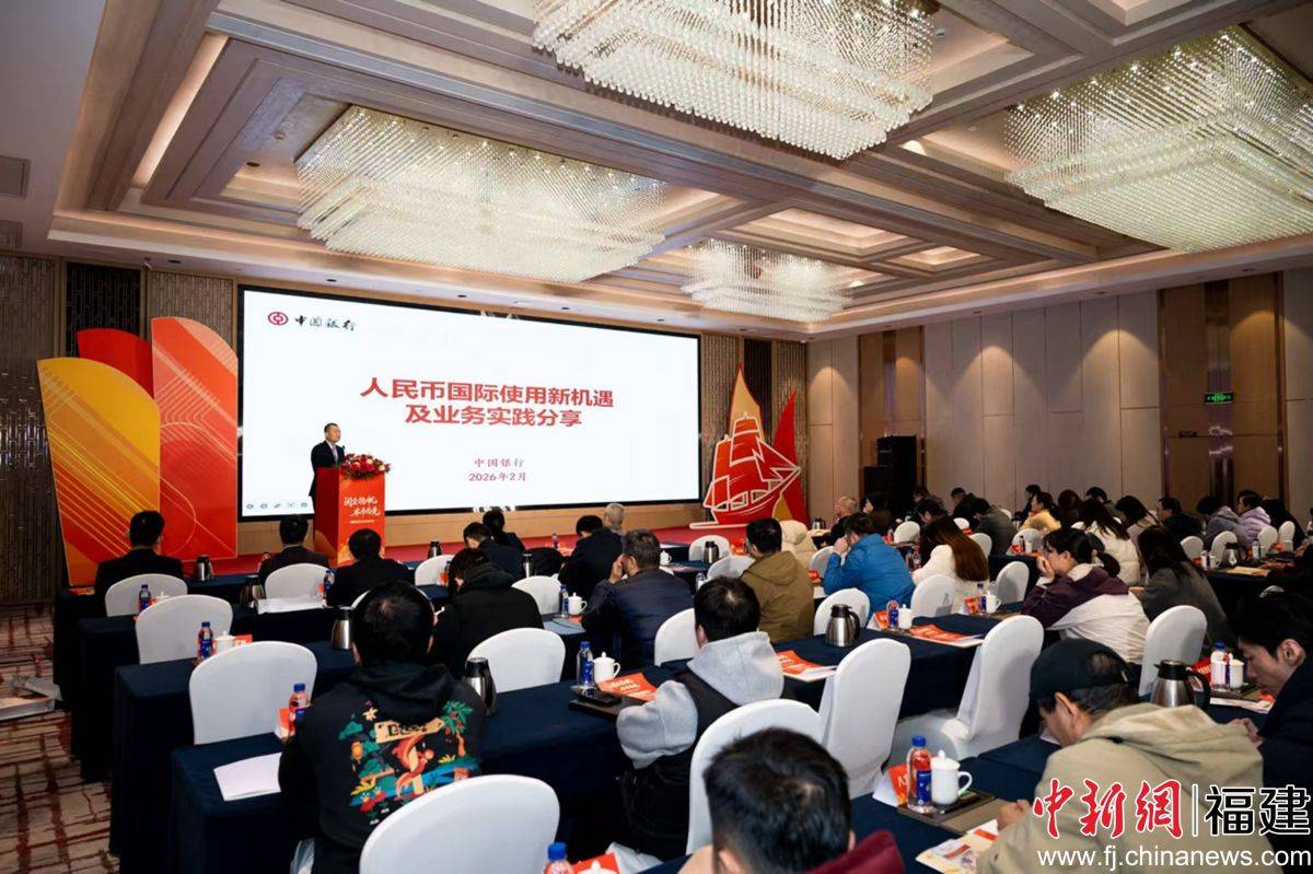 中新网福建新闻2月5日电 2026年2月4日,由中共福建省委金融委员办公室、中国人民银行福建省分行、福建省人民政府国有资产监督管理委员会共同指导,中国银行福建省分行承办的“闽企扬帆 本币为先”人民币国际使用推介会在福州举办。活动聚焦人民币国际使用与福建国企跨境金融需求,政府代表、省属国企代表及金融机构负责人参会合计约120名,共话人民币跨境使用新机遇。