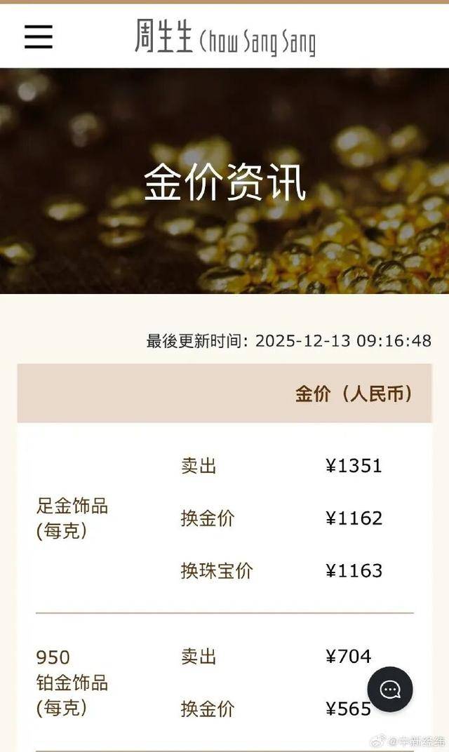 13日,周生生、老庙黄金、老凤祥等国内部分品牌金饰克价续创年内新高。周生生金饰涨至1351元/克,老庙黄金涨至1352元/克,两家品牌金饰克价均一夜上涨13元;老凤祥金饰涨至1345元/克。