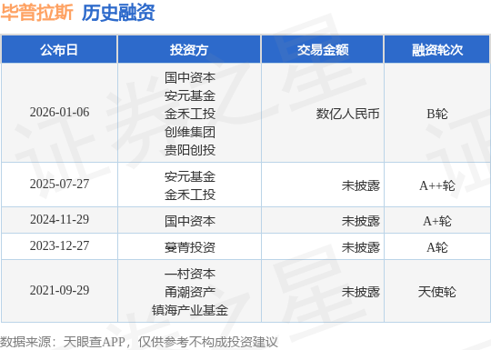 证券之星消息,根据天眼查APP于1月6日公布的信息整理,宁波中科毕普拉斯新材料科技有限公司B轮融资,融资额数亿人民币,参与投资的机构包括国中资本,安元基金,金禾工投,创维集团,贵阳创投。
