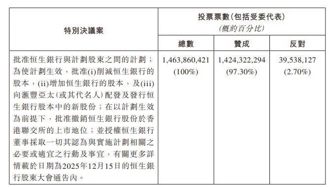 在取得香港高等法院的批准且满足相关条件后,恒生私有化计划将于2026年1月26日生效,并预计于1月27日从港交所撤销上市地位。这意味着自1972年上市的恒生银行或将结束53年的公开交易历程,成为汇丰控股的全资附属公司。