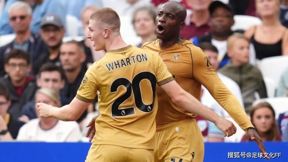 水晶宫中场球员亚当·沃顿与让-菲利普·马特塔庆祝进球