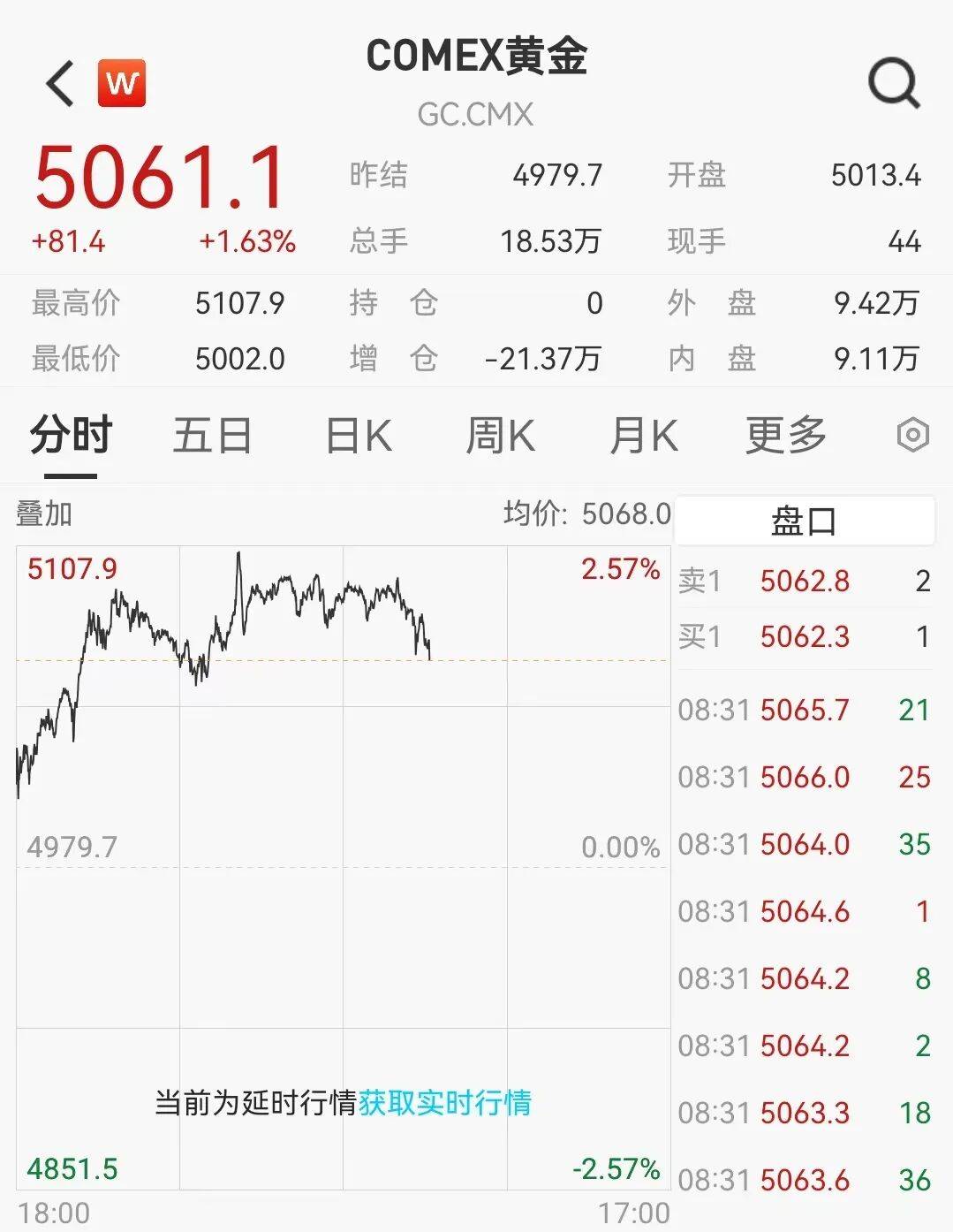 美国当地时间1月26日早间,COMEX黄金一度冲上5100美元/盎司,再次创下历史新高。高盛给出了5400美元/盎司的黄金目标价,而摩根士丹利则喊出了更高的目标价——5700美元/盎司。