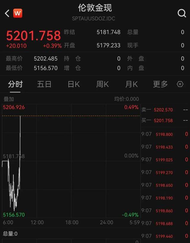 北京时间28日早盘,现货黄金大幅拉涨,盘中首次站上5200美元,再创历史新高。截至发稿报5201.758美元/盎司,涨0.39%。