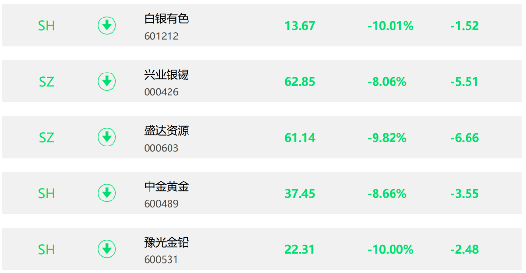 1月30日,黄金概念股多数低开。白银有色、兴业银锡、豫光金铅、中金黄金、盛达资源等多股跌停价开盘。