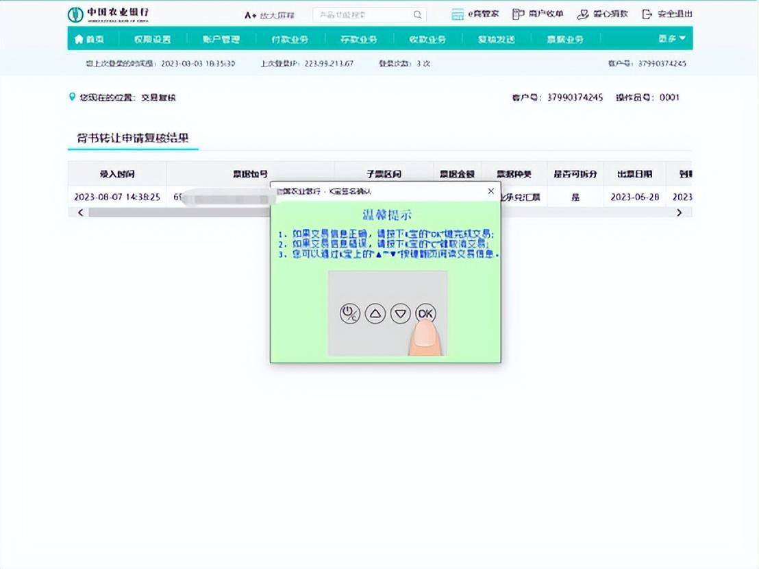 如果是两个U盾,接下来就是换复核U盾重新登录企业网银,确认无误后复核完成。