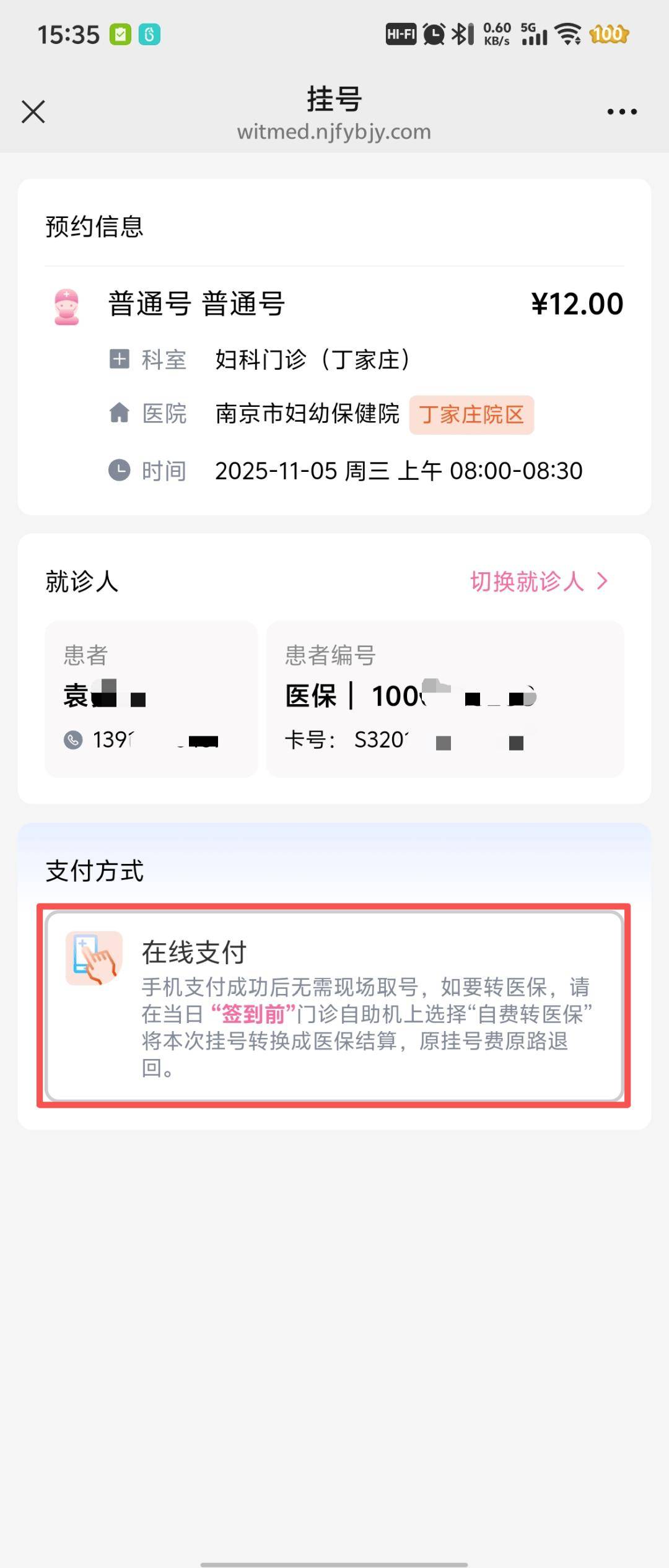 01 预约挂号:在线支付 > 选择【医保支付】,点击【允许】,进入南京市医保,进行授权。
