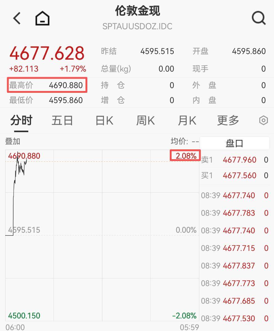 国际黄金和白银价格19日均创历史新高。伦敦现货黄金价格一度涨破每盎司 4690美元,现货白银价格一度突破每盎司94美元。