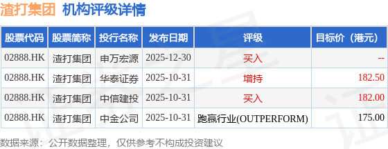 机构评级详情见下表: