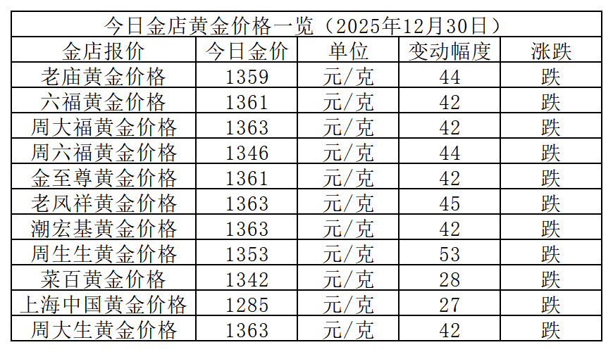 今日国内金店黄金价格继续回落,多数品牌每克黄金跌幅超40元。其中,周大福、潮宏基、老凤祥、周大生报价均为1363元/克,并列成为市场最高价。上海中国黄金价格降至1285元/克,仍为市场最低价。两者之间的价差为78元/克。