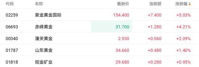 财联社12月15日讯(编辑 胡家荣)今日港股黄金股多数走强。截至发稿,紫金黄金国际(02259.HK)涨5.03%、赤峰黄金(06693.HK)涨4.21%、潼关黄金(00340.HK)涨2.09%、山东黄金(01787.HK)涨1.40%。