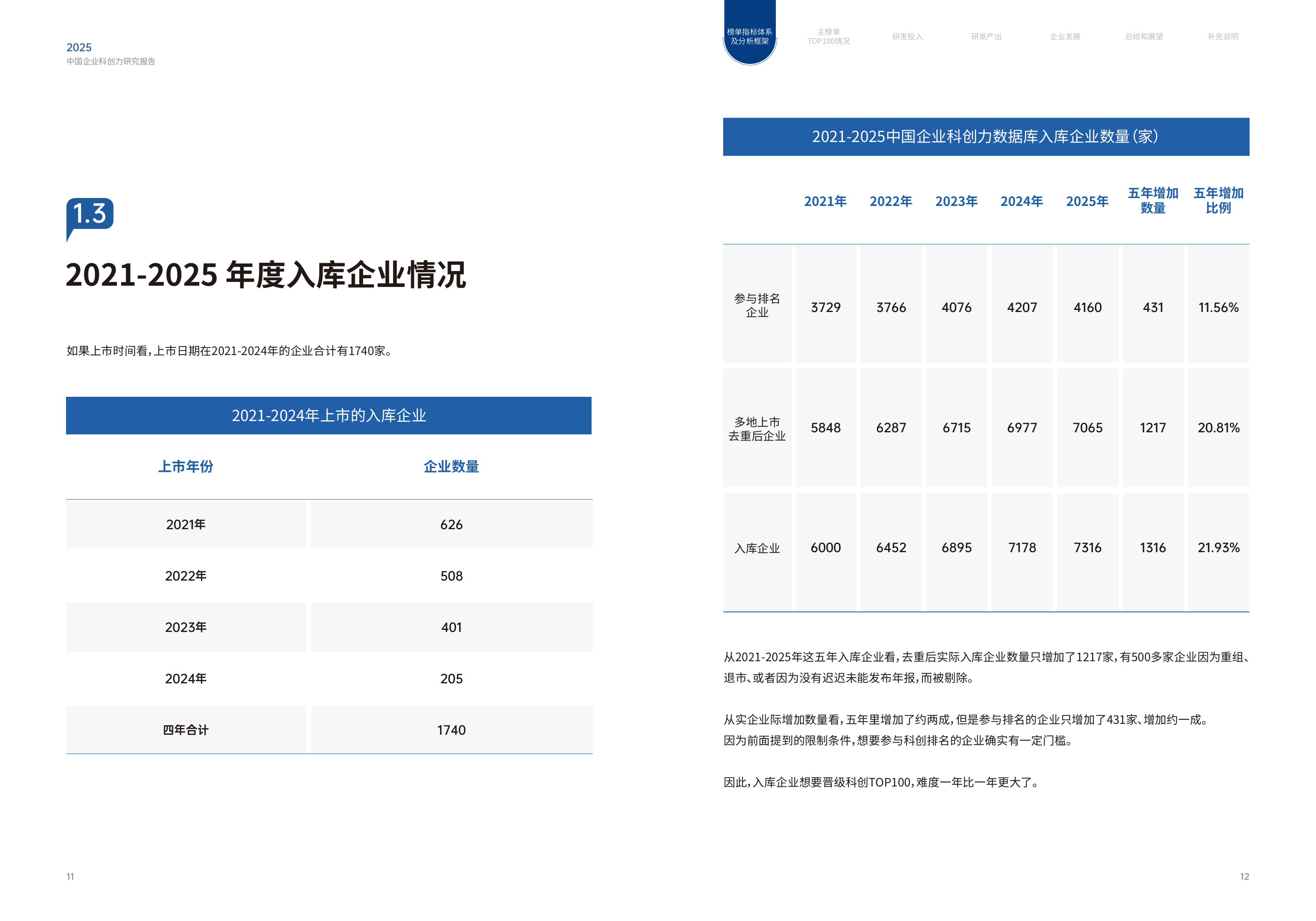 本报告聚焦于企业科技创新能力的评估与分析,构建了涵盖研发投入、研发产出、企业发展等多维度的指标体系。通过2025年度入库企业的数据,梳理出企业在科研投入、创新成果及经营表现等方面的实际情况。