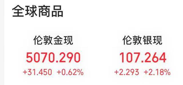 1月26日,现货黄金向上突破5000美元/盎司,续创新高。截至发稿,据同花顺数据,伦敦金现报5070.29美元/盎司,日内上涨0.62%。与此同时,现货白银报107.264美元/盎司,日内涨2.18%。