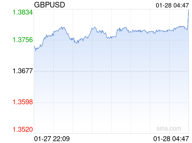 新浪外汇消息2026年01月28日,截至04时47分,外汇市场上英镑兑美元汇率突破1英镑兑换1.3832美元。涨幅为1.1333%