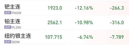 27日晚,NYMEX钯主力合约跌逾12%,NYMEX铂主力合约跌逾10%。