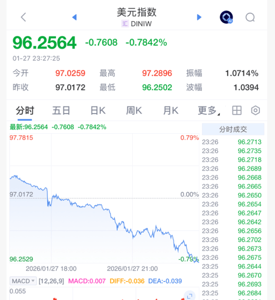 美元已连续第四个交易日走弱,有市场分析认为,这轮疲软反映出投资者在美国政策反复无常之后的谨慎情绪,其中包括美国总统特朗普威胁“接管格陵兰岛”。从更长期的视角来看,美联储独立性风险、美国政府财政赤字扩大以及地缘政治风险升温等因素,都在拖累美元指数。