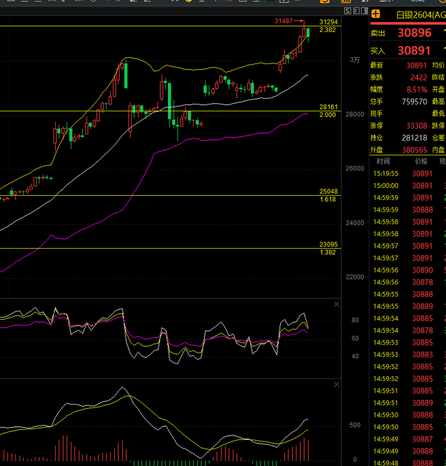 关键价位:压力29178(今日高点)、29500(短期阻力位);支撑28500(今日低点)、28000(前期支撑位)
