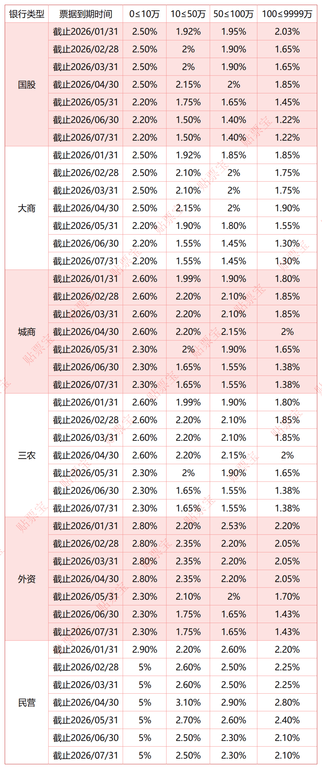 以下为2026年1月30日的银行承兑汇票贴现利率报价表(来源贴票宝):