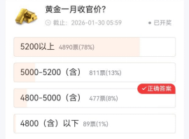 由于贵金属前期走势持续强劲,用户的看涨情绪普遍高涨。近8成参与调研的用户笃定金价能冲破 5200 美元/盎司大关,仅有8%少数派保持谨慎,押注金价在4800-5000美元区间波动。