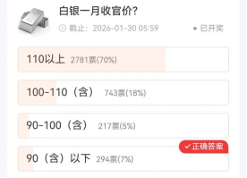白银方面,7成用户认为白银将收于110以上,仅7%用户给出保守预测,认为白银将收于90美元/盎司(含)以下。
