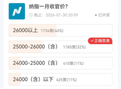 纳指方面,乐观派押注AI等新兴赛道的持续爆发,理性派则更关注美联储政策收紧对成长股估值的压制。近半数(46%)用户对纳指充满信心,认为能突破26000点整数关口,32%的用户选择25000-26000点的中性区间,既认可科技股的长期价值,也充分考量短期市场波动,精准命中正确答案。