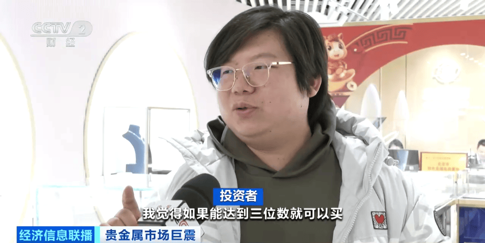 投资者:因为我觉得金价肯定还会上涨,现在属于小跌,如果能达到三位数就可以买。