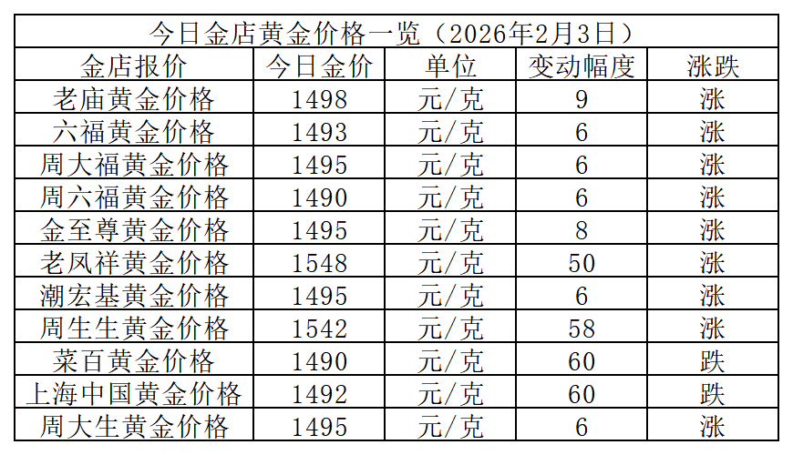 以下是各大品牌金店详细报价:
