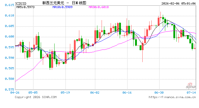新浪外汇消息2026年02月06日,截至05时00分,外汇市场上新西兰元兑美元汇率跌破1新西兰元兑换0.5961美元。跌幅为-0.6996%