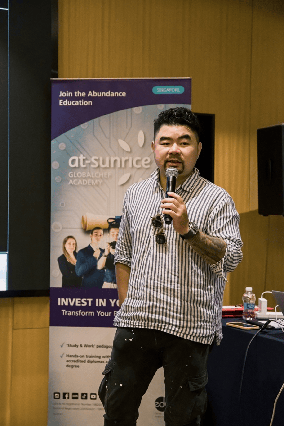 活动中,At-Sunrice 招生与合作事务部总监 Suman 先生致欢迎辞,并全面介绍了学校情况。作为新加坡烹饪教育领域标杆院校,其是首批获得国家继续教育与培训协会(NCI)认证的烹饪学院,还创下新加坡私立教育委员会(CPE)首个授予 EduTrust 四年期认证的烹饪院校、首个同时斩获 NCI 认证的专业烹饪教育机构这两项行业纪录。