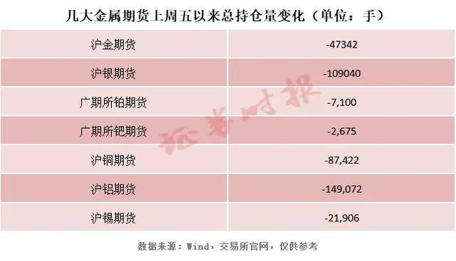 在黄金和白银之外,国内期货市场中,铂、钯、铜、铝、锡等金属期货的总持仓量也随着相关品种价格的波动而出现下滑。